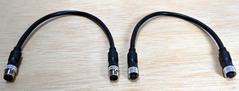 And here’s another way a gender change cable can be useful. With the black female-to-female change cable at left, a standard Actisense 4-way and simple power cable becomes Maretron-like gender optimal with all male connector pins pointed toward the 12v feed. Of course field installable N2K connectors are another way to solve gender issues, though not as easy.