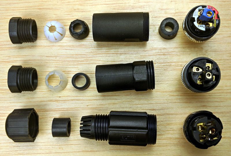 More specifically, I caution against the Amphenol LTW Field Installable connectors seen at bottom above, and I hope the photo illustrates why. After you run a naked N2K Micro cable through the various sealing and strain relief bits at left — all quite functional — there comes the moment when you must fish five skinny stripped wires into five specific locations, and good guidance really helps.
