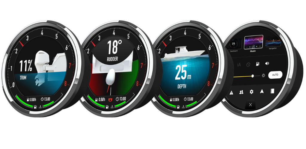 The E360 is a 4in (102mm) round touchscreen multi-function display that features the ability to display a wide range of NMEA 2000 data. It is supplied with preloaded OpenSeaMap charts, offers Navionics compatibility via SD card and has built-in Fusion music control. The E360 is waterproof to IPX6 and includes built-in Wi-Fi and GPS. It offers high levels of user customisation for displayed data and alert thresholds.