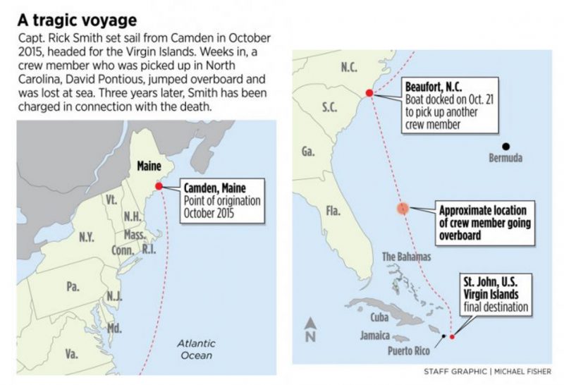 Actually, I’ve probably discussed the death of David Pontious more than most sailors because Rick Smith and Cimarron typically summer in my home harbor. The opinion I often heard from experienced skippers, and share, goes like this: While Smith probably should have done more when Pontius apparently jumped overboard, it’s very unlikely that any action would have been effective given the circumstances, and it was hard to understand why charges were pressed. Heck, a 2015 USCG investigation seemed to clear Smith and the federal judge quickly acquitted him in January.