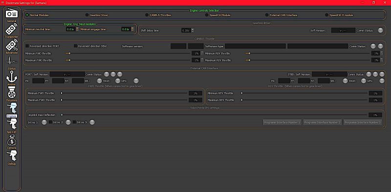 - Engine controls can be adjusted for engine control type, maximum throttle applied, delay between inputs and several other parameters