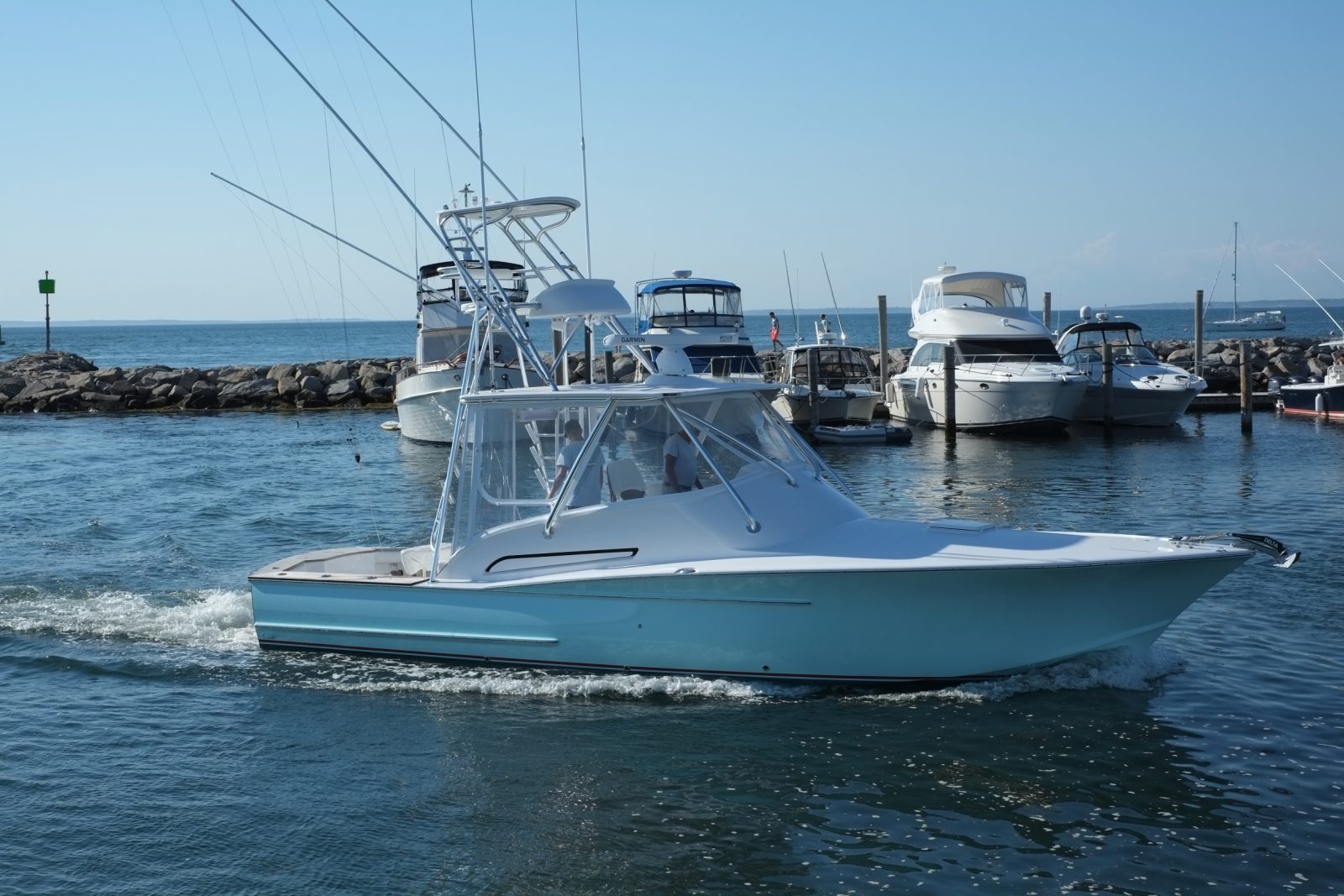 When I fired it up for the first time, I was a bit anxious due to my prior experience with other solid-state radars. Those units worked just fine for navigation targets out 6 to 8 miles and would probably get the job done for most people most of the time. But I need more than that. I need to be able to see birds 4-6 miles away so that I can find the fast-moving tuna that will frequently be under them. I also need to see small lobster pot floats in the fog or at night when they tend to leap out of the water unexpectedly to grab a prop. That’s also why I mounted the biggest antenna array that would fit (even though some people claim the six foot radar antenna makes the boat look like an idling helicopter when spinning).