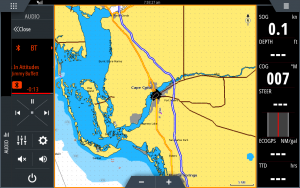- Simrad’s NSS EVO12 with the audio panel expanded