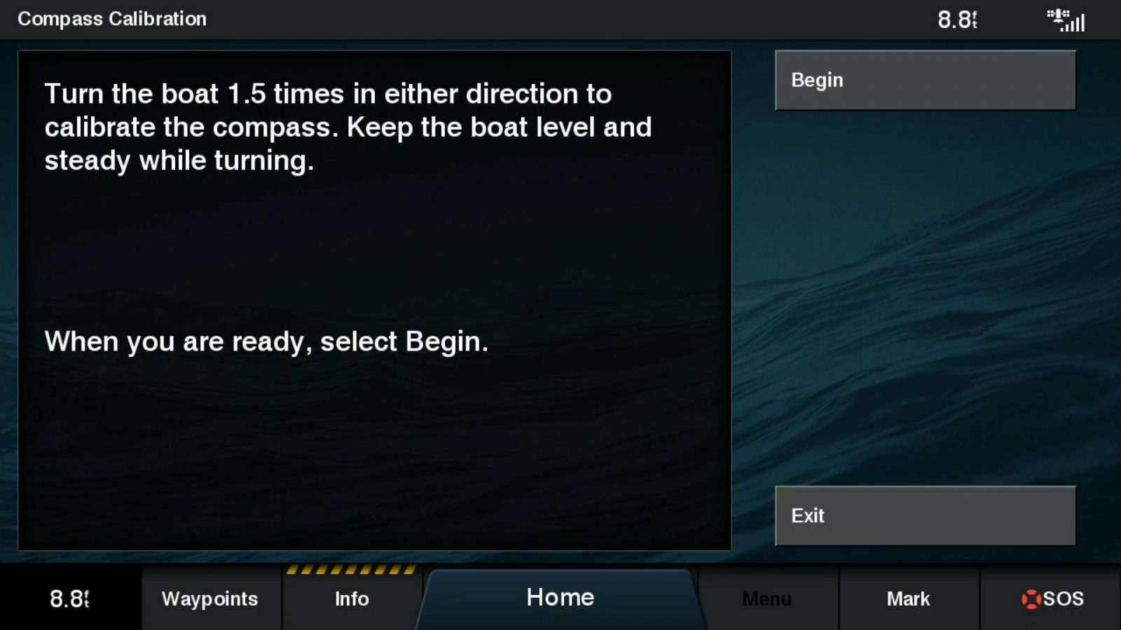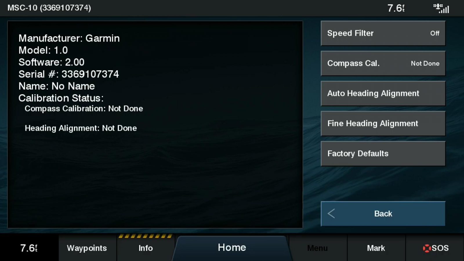 Once the MSC 10 is installed and connected to the network, it starts working without any calibration. If you plan to use the magnetic compass, Garmin recommends calibrating it. Calibration is similar to the GPS 24xd’s: one and a half slow circles and then 45 seconds of straight cruising to calibrate and align the compass.