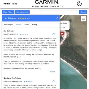 Garmin is also promising that “we will never edit a review. In rare instances an ActiveCaptain review is removed if it does not meet the guidelines of the terms of use of ActiveCaptain. We always inform the user and give them time to update the review before it is removed.”