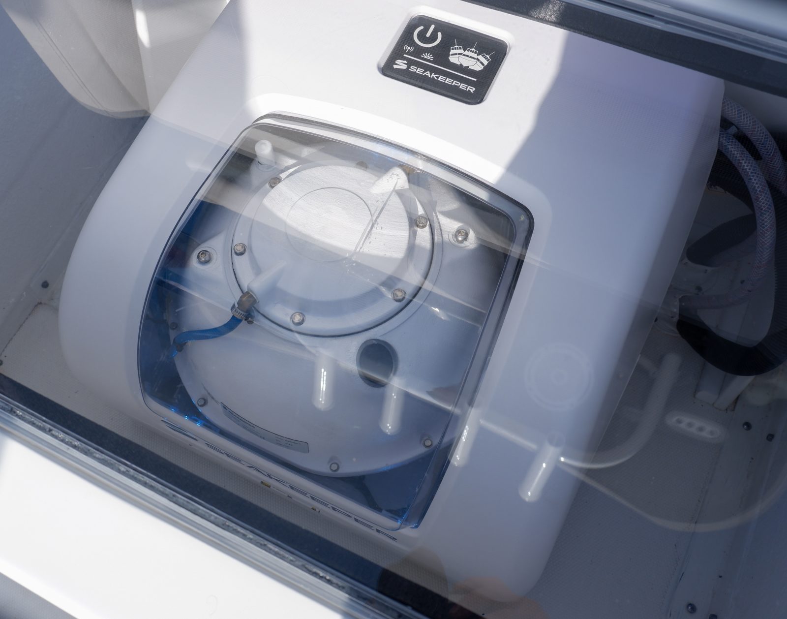 Continuing the theme of simplification, there’s a control panel right on top of the unit to manage the stabilizer. This means it can be controlled without a helm mounted controller, though I suspect most installs will leverage Seakeeper’s MFD integration.