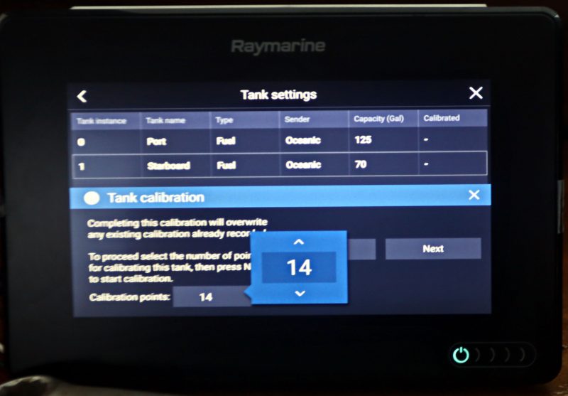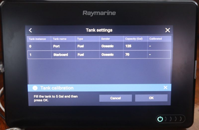 Raymarine LightHouse 3 calibrates Oceanic Systems tank senders, on my float mate’s boat