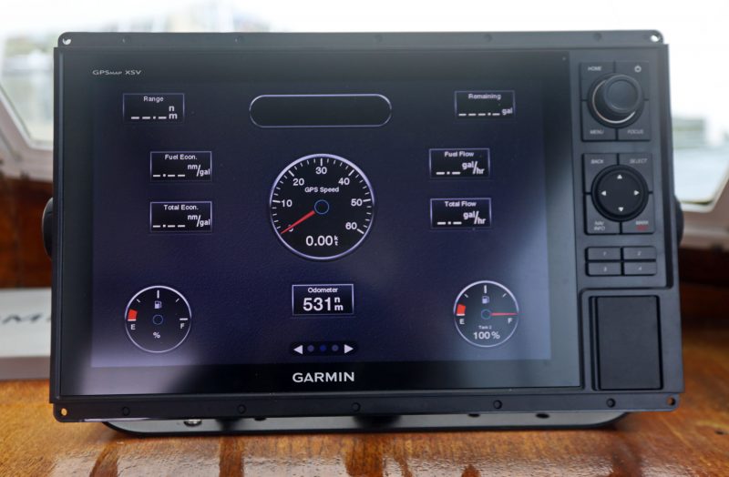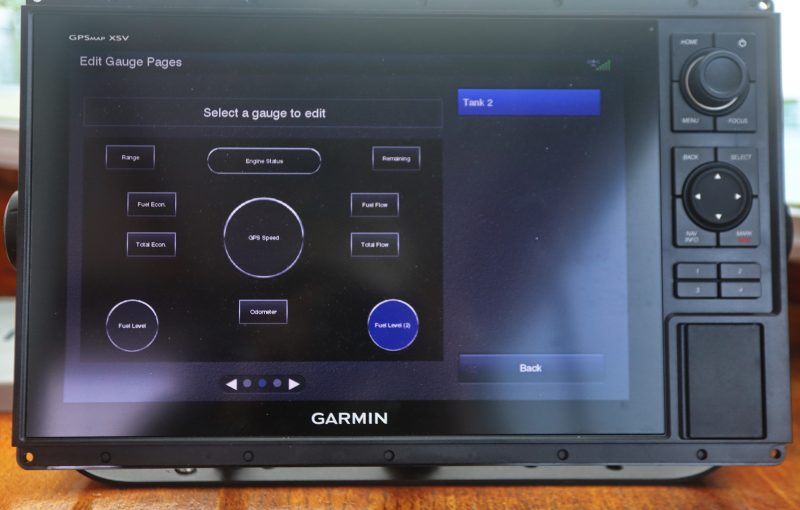In Jud’s case, the next step was making sure that the tank level information got to the Garmin which will stay on the Shannon, and I got to show him how Menu/Edit Gauge Pages let him select which tank showed where. The hoped-for “100% Full” on Tank 2 (aka “Starboard Fuel Tank,” which can also be specified on the Garmin) got him grinning, and I suspect he’ll also grin when he gets to check the Garmin’s fuel used number against his next fill-up.