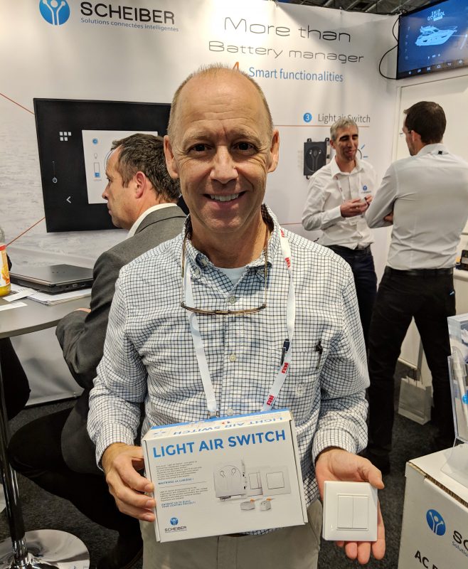 Also, while the Light Air Switch can certainly serve standalone, note the mentioned compatibility with other Scheiber and third-party boat systems. I’m sure there were new compatibility discussions going on in Scheiber’s 2018 METS booth below and, moreover, I know that very familiar brands like Simrad are aiming for compatibility with most any digital interface that makes boating better, standard or proprietary, en route to full information display style integration.