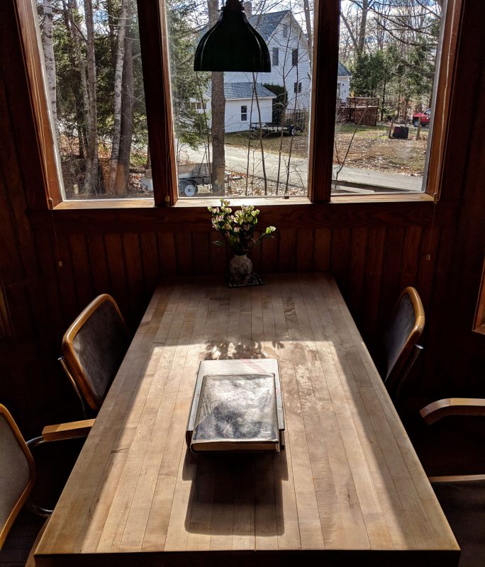 But I didn’t have a gadget handy on December 4 and why not use the Equation of Time to check where True South really is relative to the built house? The sunlight was crisp, the kitchen table above was already perpendicular to the south wall, and the books helped with a sharper shadow. It was just a matter of employing the Equation in a different way.