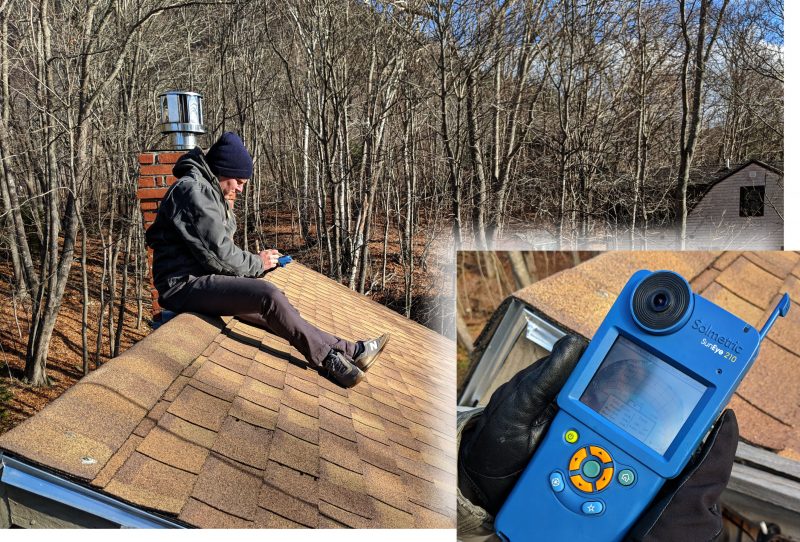 The point of all this was the prospect of turning my nearly 40-year-old passive solar home into an active solar home. And of course the bright young field designer from Revision Energy who did the initial assessment brought along a tool that quickly duplicated my work and much more. The Solmetric SunEye 210 “incorporates a calibrated fisheye camera, electronic compass, tilt sensor, and GPS” along with software that must include the same ephemeris work behind The Nautical Almanac to calculate solar access for a specific photovoltaic install location.