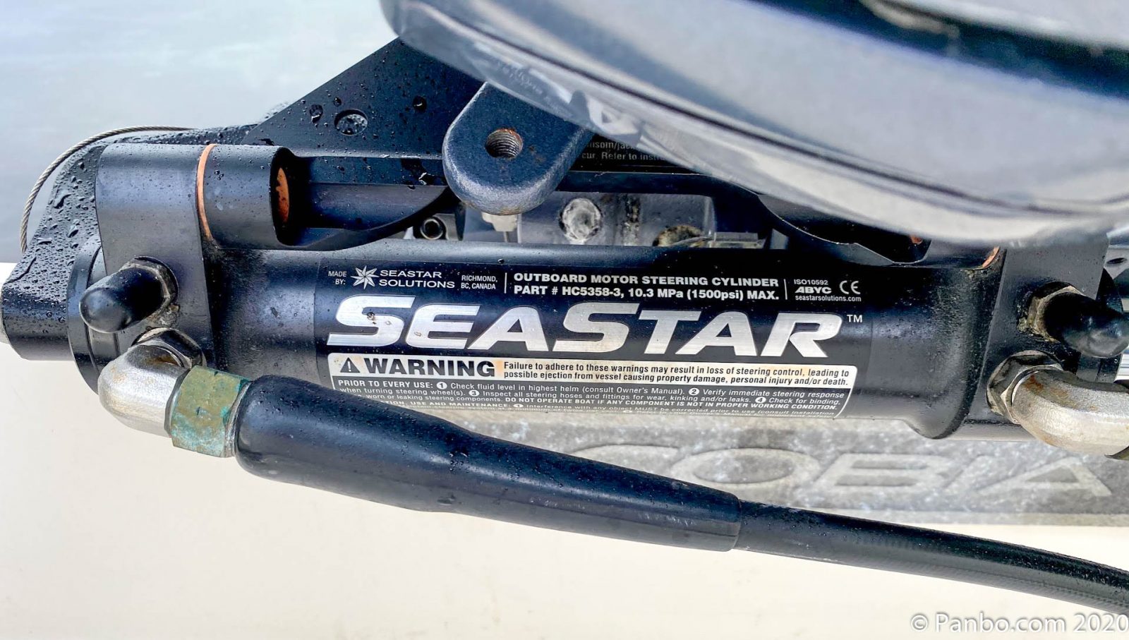 When I bought Panbo(at) (my 22′ Cobia Center Console) it came with well used — and at the time, leaking — BayStar hydraulic steering. After replacing the seals on the hydraulic ram, the leak was resolved, and after twice purging the system, I had working and reliable steering. But, I didn’t find the steering to be very accurate or responsive and the effort was pretty high.